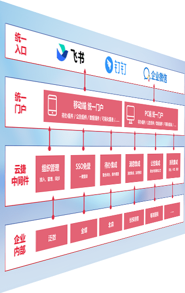 对协作平台提供支持服务,,,支持企业应用与协作平台对接,,,,包含组织同步、、消息集成、、、、待办集成等。。。支持目前主流的协作平台:钉钉、、、、企微和飞书。。